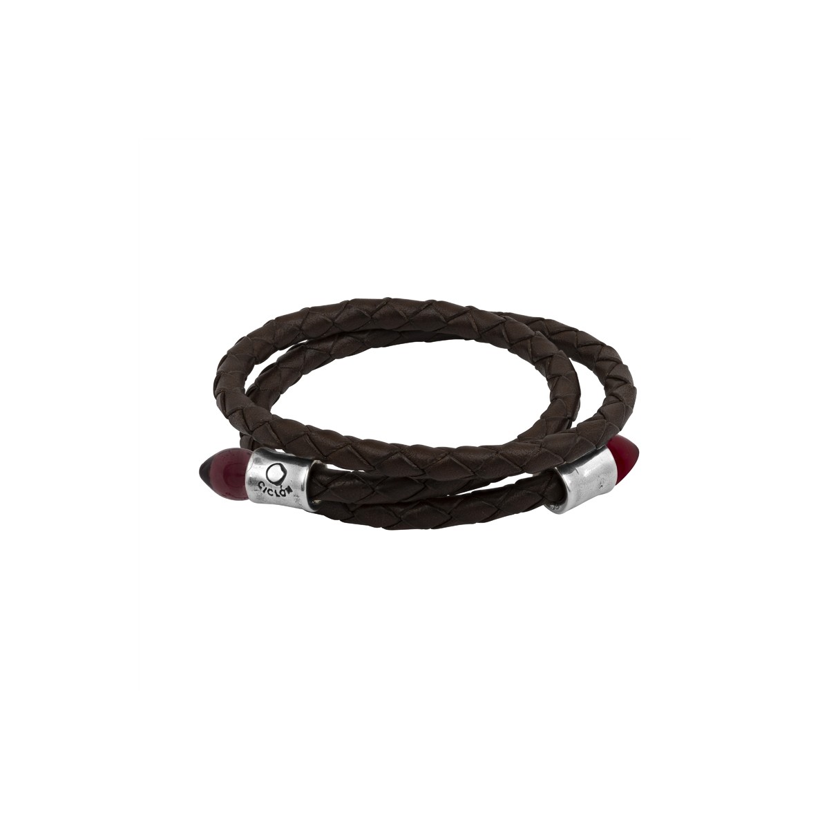 PULSERA CICLON ZAMAK CUERO MARRON ROJO Y LILA 213123-32-0