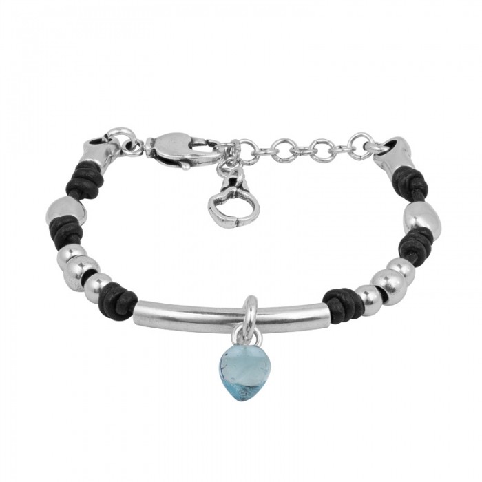 Pulsera Rania de cuero y metal bañado en plata con gota central de murano. Talla única de 17 a 20cm. Cierre de mosquetón.