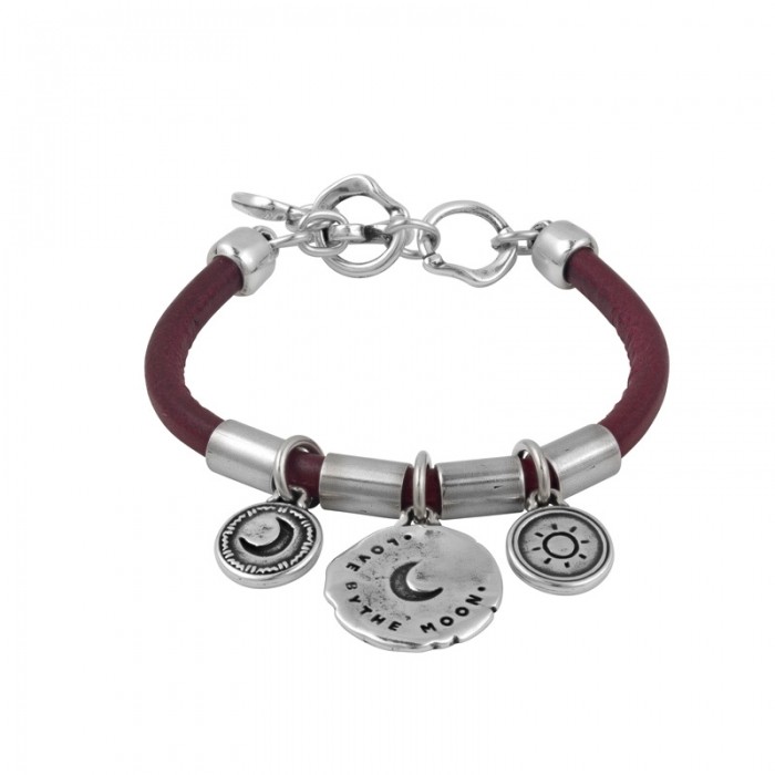Pulsera de cuero reversible, con inscripciones Love by the moon y Live by the sun de la colección Eclipse. Los charms llevan motivos de sol y luna.
