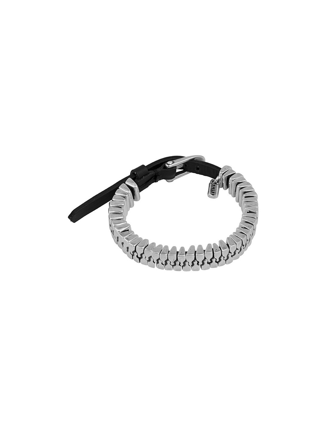 Pulsera Cremallera de la colección especial para hombre de la firma Ciclón. Diseño de cadena de cremallera bañada en plata montada en cuero. Disponible en 2 tallas. Cierre de cinturón.