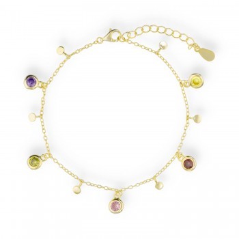 PULSERA DE PLATA COLOR DORADO CON CHAPITAS Y CIRCONITAS EN COLORES