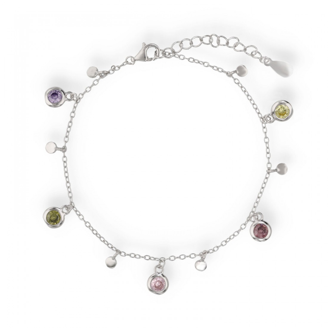 PULSERA EN PLATA CON CHAPITAS Y CIRCONITAS DE COLORES