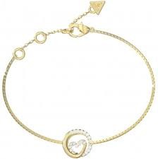 Pulsera Guess Iconique Acero Dorado Corazón JUBB05527JWYGS: Pulsera Guess de mujer fabricada en acero inoxidable con chapado dorado, de diseño elegante y femenino. Su estética combina una estructura de cadena regulable con un charm en forma de corazón envuelto, que le añade un toque romántico distintivo. Además, el charm incluye una aplicación de cristal para aportar brillo sutil.