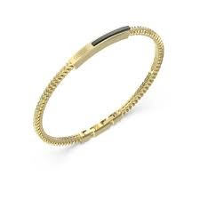 Pulsera Guess para hombre de la colección Noir fabricada en acero bañado en oro amarillo cmpuesta por una cadena con atractivos eslabones que dan lugar a una pieza rectangular en su parte central con el grabado Guess y una pieza con baño color negro. Su cierre es de gancho.