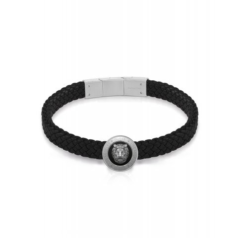 PULSERA GUESS CUERO NEGRO Y ACERO LEON JUMB01312JWSTBKT-U