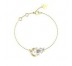 Material: Acero inoxidable bañado en oro amarillo. Cristales brillantes. Cierre: Mosquetón ajustable mediante cadena extensible. Longitud: 14,6 + 4 cm.