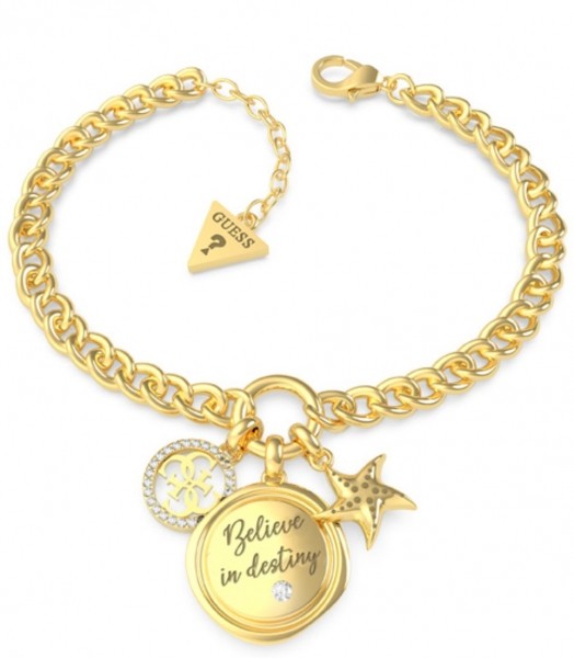 PULSERA GUESS BELIEVE IN DESTINY EN ACERO DORADO CON TRES COLGANTES