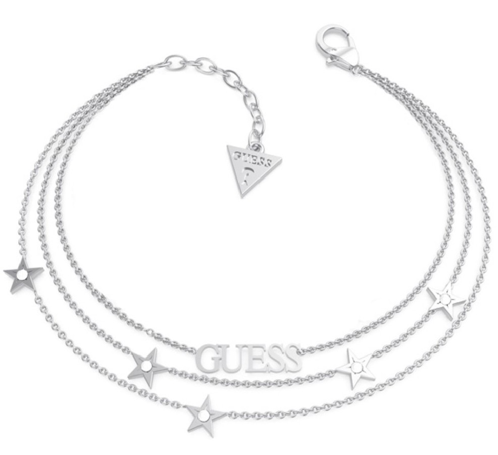 PULSERA GUESS A STAR IS BORN EN ACERO CON TRIPLE CADENA Y ESTRELLAS