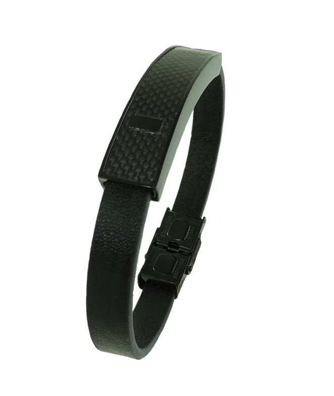 Pulsera Olargues de acero y piel con fibra de carbono.