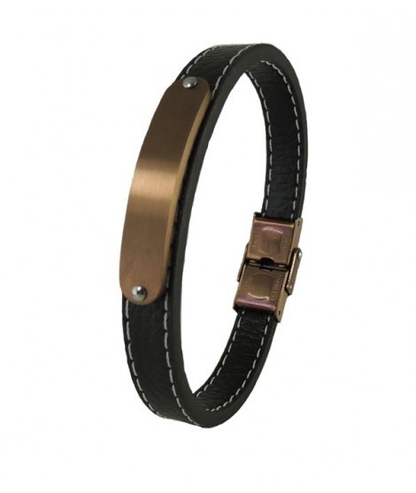PULSERA IVOIRE CUERO MARRON y ACERO CHAPADO EN ROSA