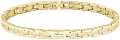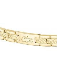Pulsera Lacoste par mujer de la colección Metropole fabricada en acero inoxidable ionizado en oro amarillo compuesta por eslabones rectangulares con el logotipo lacoste en su parte central. Su cierre es desplegable.