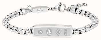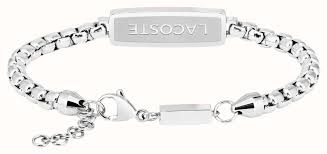 Pulsera Lacoste para hombre de la colección District fabricada en acero inoxidable plateado compuesta por una atractiva cadena que contiene una pieza rectangular con el logotipo e icono LACOSTE. Su cierre es de mosquetón ajustable mediante cadena extensible.