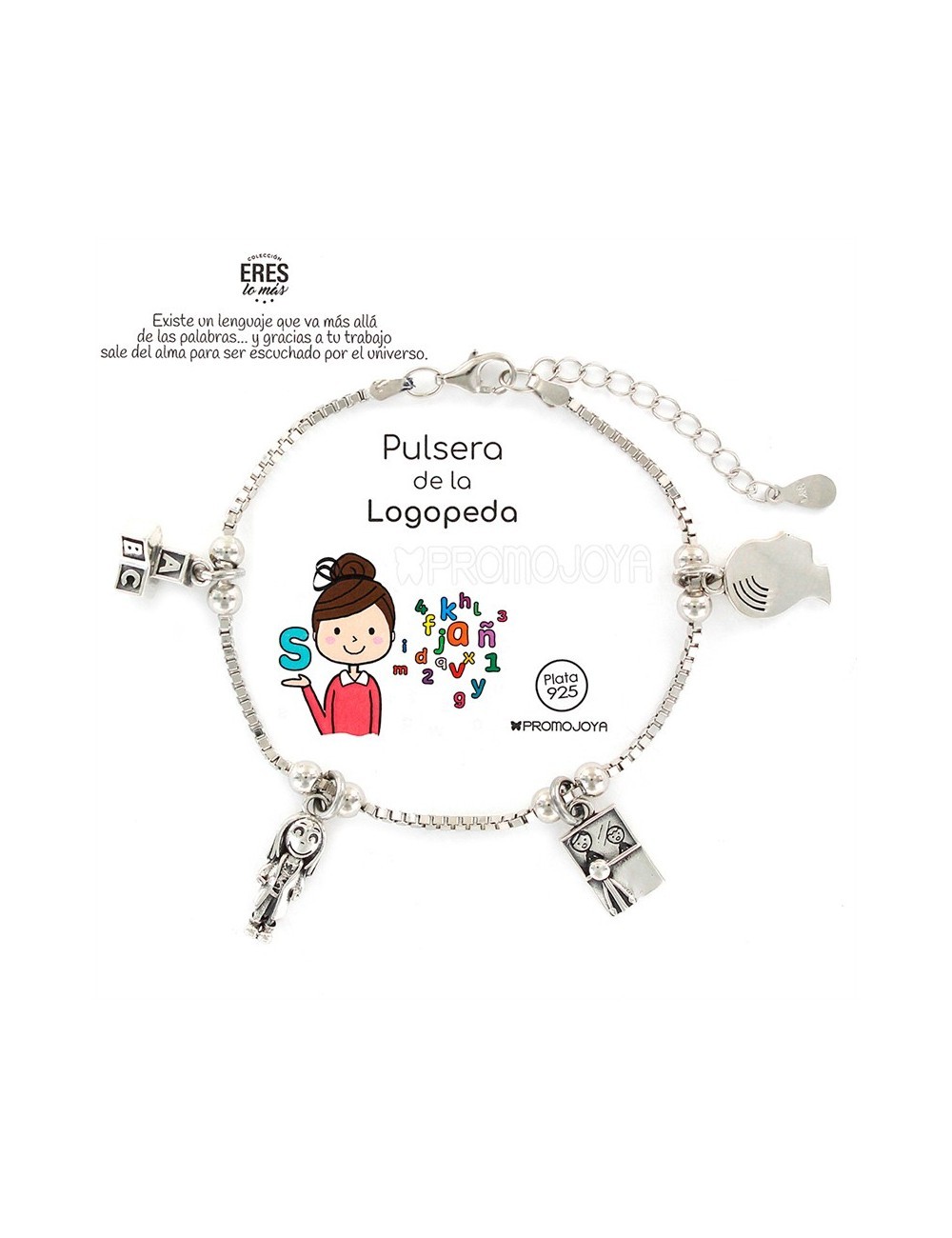 Diseño: Pulsera de Plata con 4 colgantes dedicados a la mujer Logopeda