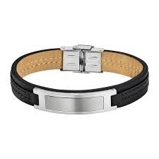 Pulsera Lotus Style de hombre de la colección Urban. Pulsera elaborada en cuero de color negro y acero antialérgico e inoxidable en color plateado con cierre de broche. La longitud de la pulsera es de 21 cm.