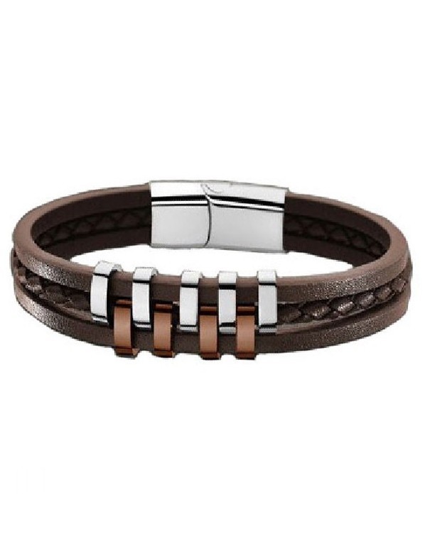 Pulsera Lotus Style Hombre LS1838-2/3. La pulsera está realizada en piel auténtica de color marrón mezclada con motivos en acero inoxidable de color plateado.