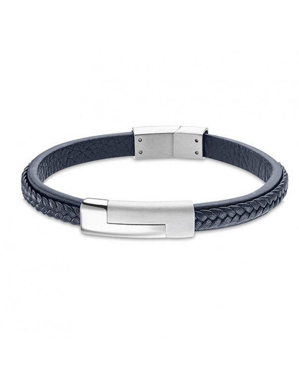 Pulsera Lotus Style Hombre Acero LS1965-2/2. Colección Menbasic. Es una pulsera original de la marca Lotus Style, para hombre. Es un modelo elaborado en cuero genuino trenzado de color azul y acero antialérgico e inoxidable con adornos en acero cruzado. La pulsera mide 22.5 centímetros.