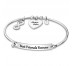 Pulsera rígida realizada en acero inoxidable hipoalergénica color plata. Finalizada una placa con la grabación " Best friend for ever" a forma de cierre con tres charms: corazón grabado "Always there", símbolo infinito y colgante con logo de la marca.