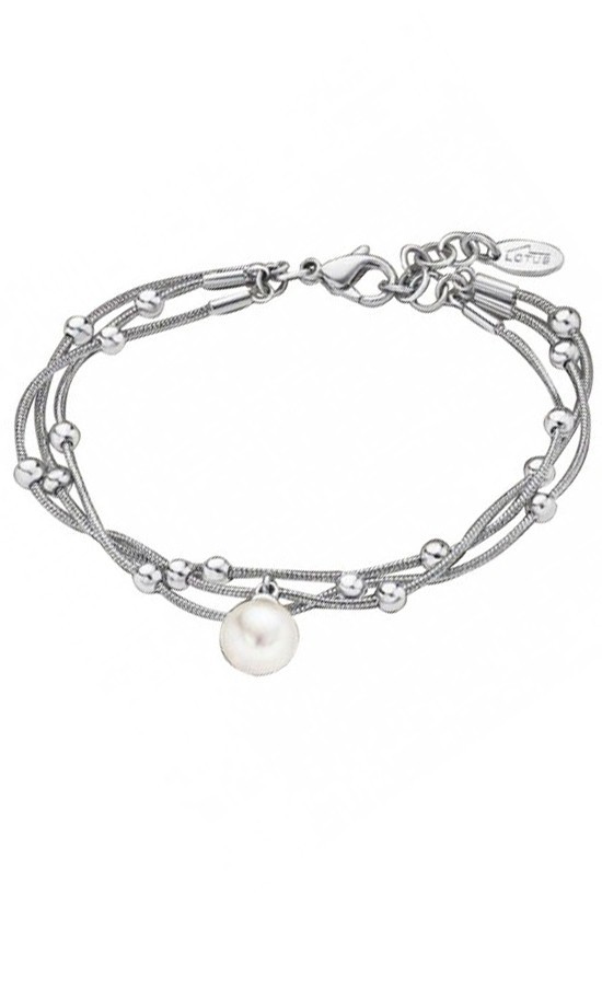 Pulsera Lotus Style de acero 316 de alta calidad, resistente a las adversidades con varias cadenas con bolitas de y una perla central, tiene un largo de 17,5 cm. con una cadenita extra que te permitirá adaptarla hasta los 21cm. con cierre de mosquetón de acero