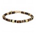 Pulsera de plata de ley 925 chapada en oro amarillo con cilindros dorados y piedra ojo de tigre.