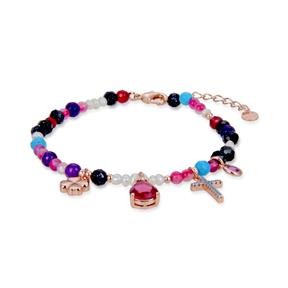 Pulsera Luxenter para mujer modelo Miya compuesta por piedras multicolor con 4 abalorios colgantes uno de ellos en forma de trébol, otro en forma de cruz, una circonita fucsia en bisel y un colgante central en forma de lágrima con una circonita morada engastada. Su cierre es de mosquetón.