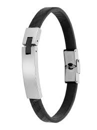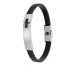 Pulsera de piel y acero. Material pulsera: Piel color negro con placa central de acero y detalle en negro. Material cierre: Acero. Longitud: 22 cm