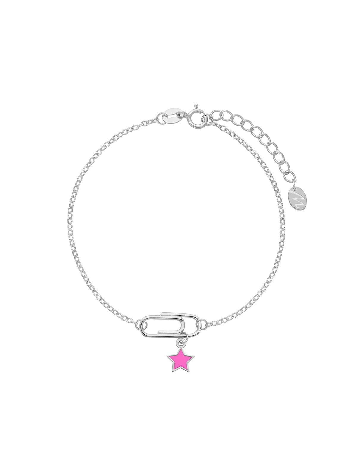 Pulsera clip estrella. Plata de 1ª Ley rodiada. Esmalte fucsia. Cierre rehasa. Cadena adaptable. Colección girls.