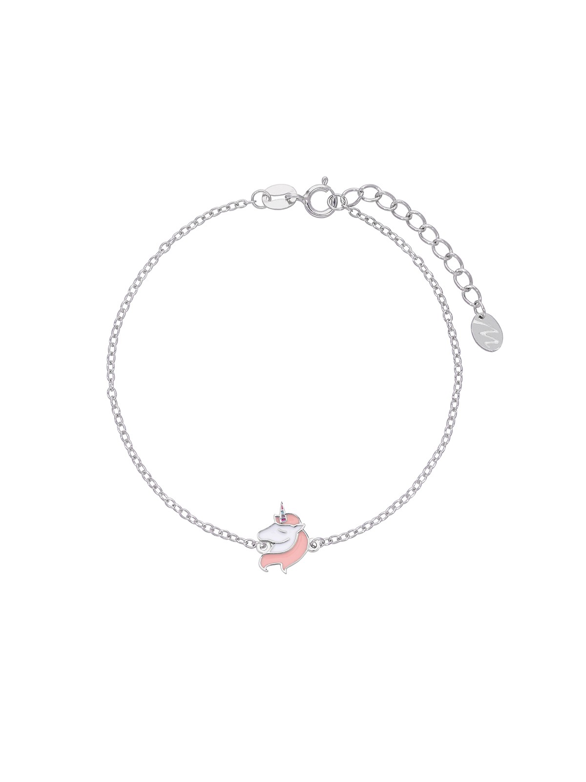Pulsera unicornio. Plata de 1ª Ley rodiada. Esmalte rosa. Cierre rehasa. Cadena adaptable. Colección girls.