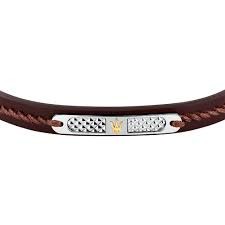 PULSERA MASERATI CUERO MARRON Y ACERO