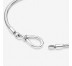 Pulsera Cadena de Serpiente Nudo Infinito de Pandora Moments se presenta con un nudo infinito asimétrico que sirve de cierre. La pulsera se divide en tres secciones con dos roscas en relieve. Este símbolo del amor eterno se puede llevarse solo o personalizado con un charm o charm colgante en el cierre y hasta 14–16 charms en el resto de la pulsera.