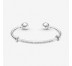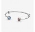 Pulsera Rígida Abierta Lado Oscuro y Lado Luminoso Star Wars™ de Pandora Moments. Uno de los extremos de la pulsera se presenta embellecido con cristales de color azul que recrean el logotipo de la Alianza Rebelde, mientras que el otro extremo se ha embellecido con cristales de color rojo que dan forma al símbolo del Imperio Galáctico. El interior de la pulsera rígida se ha decorado con el icónico sable de luz de Luke Skywalker, mientras que en el exterior se puede leer "MAY THE FORCE BE WITH YOU, ALWAYS" (Que la Fuerza te acompañe siempre).