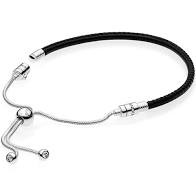 Pulsera Moments Deslizante PANDORA en cuero negro y cierre en plata de primera ley, adornada con circonitas cúbicas transparentes para charms.
