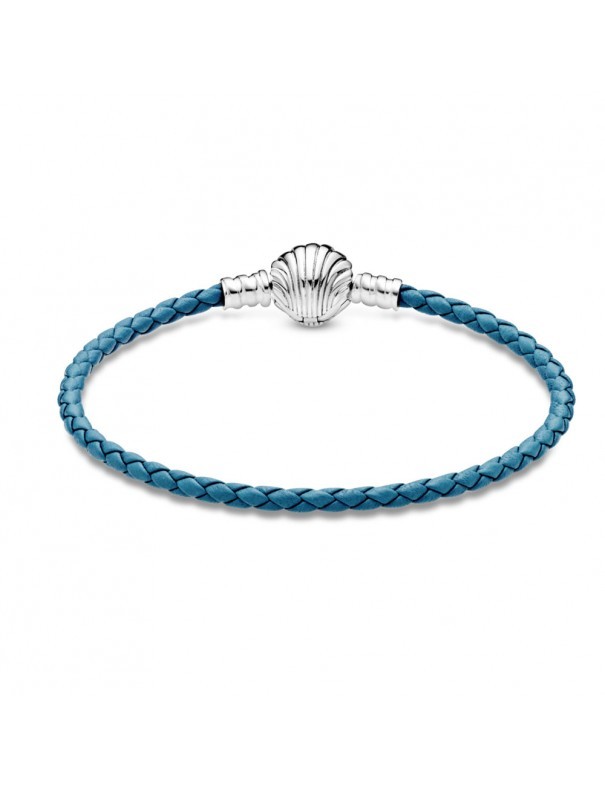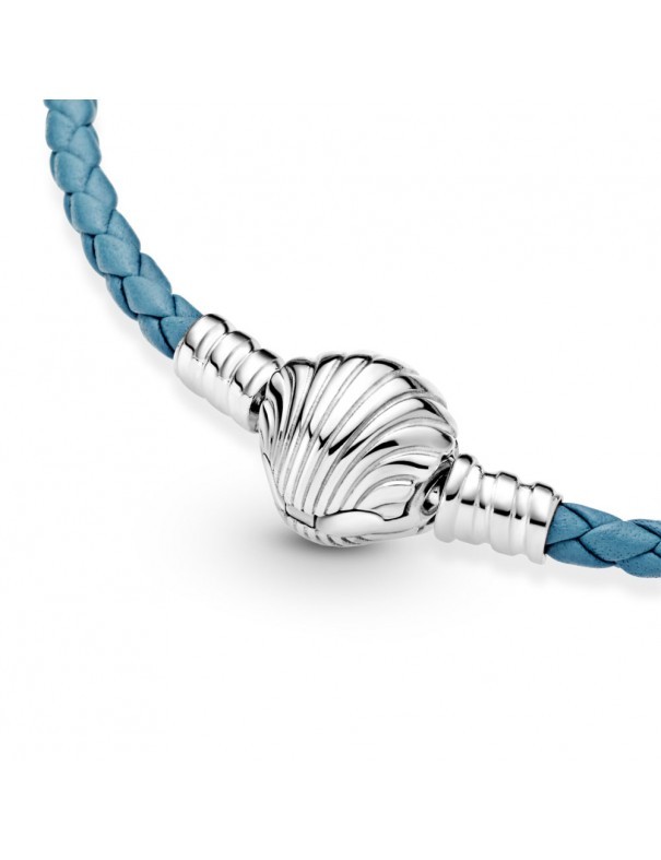Pulsera Pandora Cuero Trenzado Turquesa 598951C01-S2, cierre con forma de concha en plata de primera ley 925mls. Longitud de 19cm.