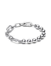 Pulsera Pandora Me para mujer de la colección Otoño 2023 fabricada en plata de primera ley compuesta en una de sus mitades por bolitas bañadas en oro amarillo mientras que su otra mitad está compuesta de eslabones Link. Su cierre es de mosquetón.