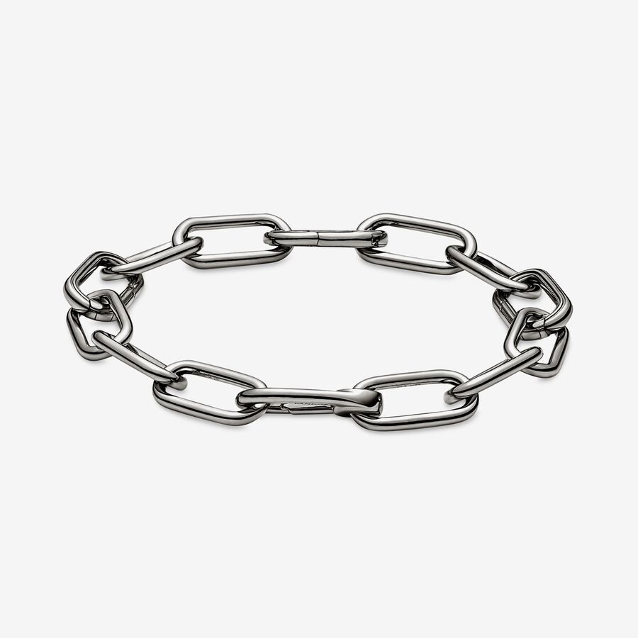 Pulsera Cadena de Eslabones Pandora ME con una aleación única de metales con un recubrimiento de rutenio ofrece innumerables posibilidades de estilo. La pulsera se presenta con tres conectores que se pueden abrir, eslabones decorativos y un cierre de mosquetón. ¡Personaliza tu cadena de eslabones a tu propio estilo! Puedes intercambiar el conjunto de eslabones entrelazados que hay entre cada conector por cuatro eslabones pequeños entrelazados, un link doble o un único link. Además, puedes modificar su longitud y ajustarla a tu gusto. Cuando hayas personalizado tu pulsera de cadena de eslabones, puedes seguir añadiendo un medallón de Pandora ME en cada link o hasta ocho mini colgantes de Pandora ME en cada conector que se pueda abrir. ¡Hay mil maneras de combinarlos y crear tu propia joya! Muestra tu estilo. *Recuerda las joyas de Pandora Me solo son compatibles con la Colección de Pandora ME. Descubre aquí cómo combinar una y otra vez tu look Pandora ME.