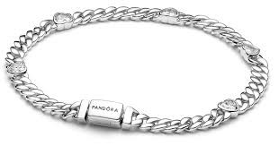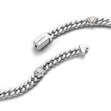 Pulsera Pandora Cadena Cubana para mujer de la colección Navidad 2025 fabricada en plata de primera ley formada por cadena cubana y corazones en forma de circonitas cúbicas transparentes. Su cierre es de tipo caja.