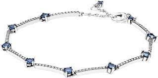 Pulsera en plata de ley con 10 cristales azules brillantes y 81 esferas de circonita cúbica transparente.