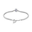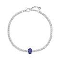 Pulsera Pandora Dos Tonos Brillante y Azul para mujer fabricada en plata de ley cuya cadena se compone de elegantes circonitas cúbicas transparentes que dan lugar en su parte central a un elegante cristal azul facetado en talla ovalada engastado en 4 garras. Su cierre es de mosquetón.