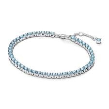 Pulsera Tenis Pandora 591469C03: Llama la atención con esta impresionante pulsera tenis, que se presenta con una fila de gemas redondas y una gema más pequeña colgando del cierre que captura la esencia del estilo moderno.