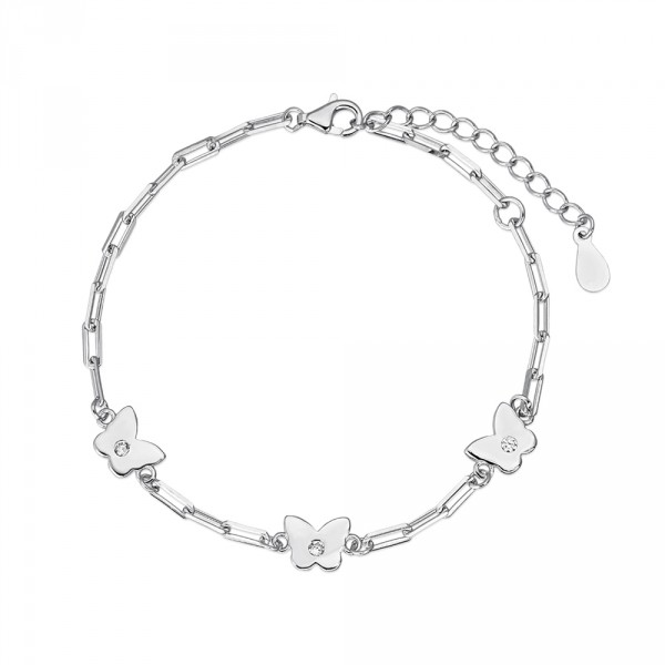 Pulsera de plata rodiada 3 mariposas de 6 mm con circonita 17 +3 cm