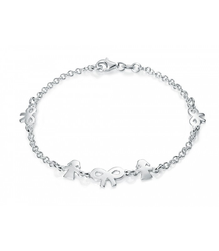 PULSERA DE PLATA DE CADENA ADORNADA CON LAZOS Y DOS NIÑAS PU3661