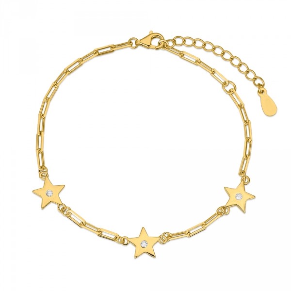 Pulsera de plata chapado 5 micras 3 estrellas de 6 mm con circonita 17 +3 cm longitud