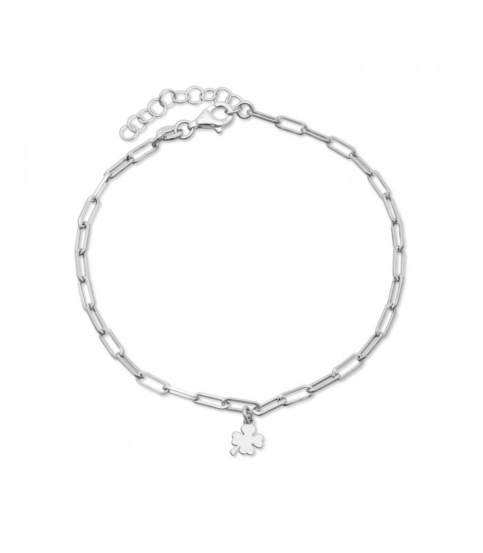 PULSERA PLATA ESLABON RECTANGULAR TREBOL COLGANDO PU5026R