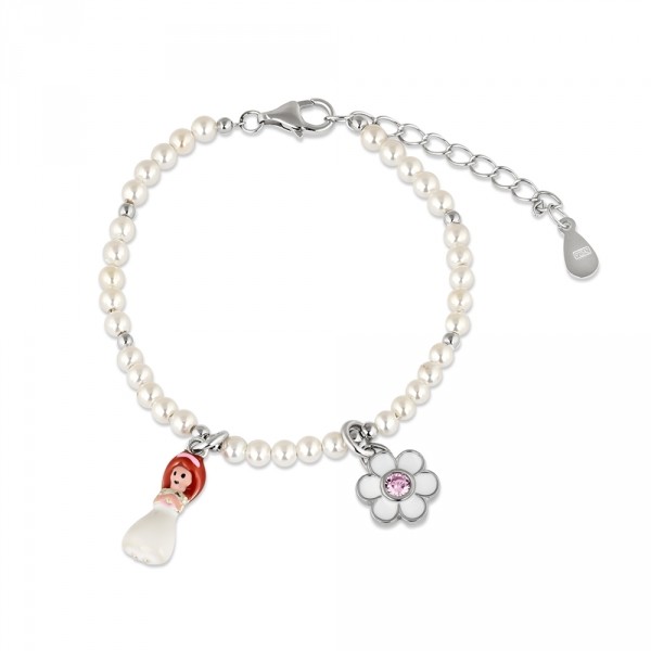 PULSERA PLATA PERLITAS 3MM CON FLOR Y NI?A ESMALTADA 9110185
