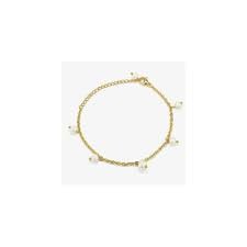 Pulsera Radiant Acero IP dorado Bridgerton. Montura formada por cadena fina de eslabón forzado decorada con 6 perlas cultivadas de agua dulce. Mide 16cm más 5.5cm de anillas alargadoras. Cierre de mosqueton.