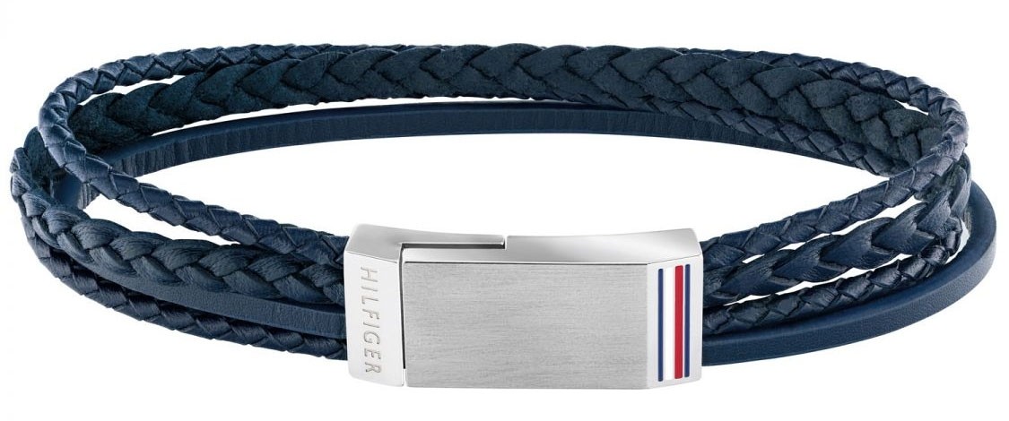 PULSERA TOMMY HILFIGER CABALLERO EN CUERO AZUL TRENZADO CON PLACA EN ACERO Width 1,3 cm Length 20,5 cm