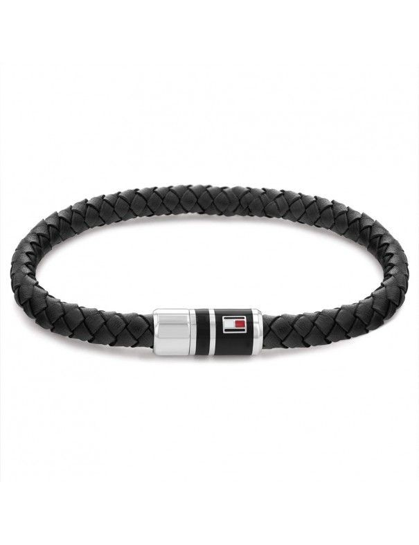 PULSERA TOMMY HILFIGER ACERO Y CUERO TRENZALO NEGRO 2790293