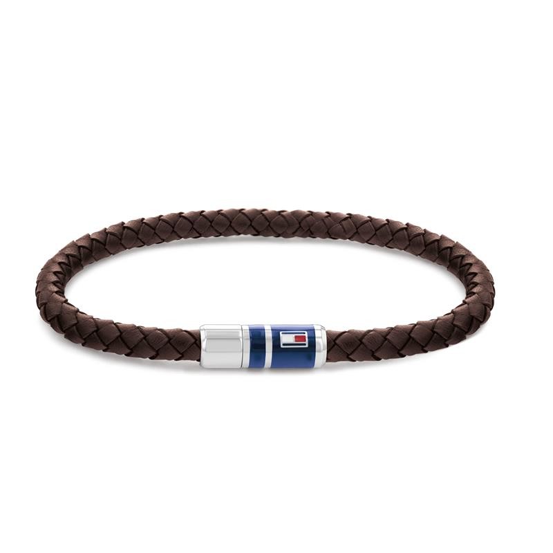 Pulsera Tommy Hilfiger para hombre fabricada en cuero trenzado marrón y acero inoxidable plateado. Estamos ante una pulsera de estilo elegante y atractivo combinable con cualquiera de tus looks. Se compone de cuero marrón trenzado con cierre de imán en acero inoxidable.