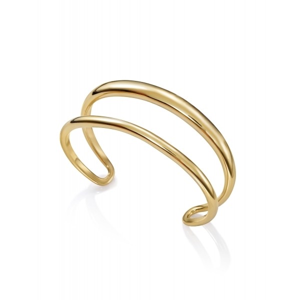 Tipo Pieza: Pulsera Detalle Pieza: Brazalete abierto Material Principal: Acero Baño / Chapado: Ip dorado Acabado: Brillo / pulido Largo / Diametro: 58mm Color: Dorado