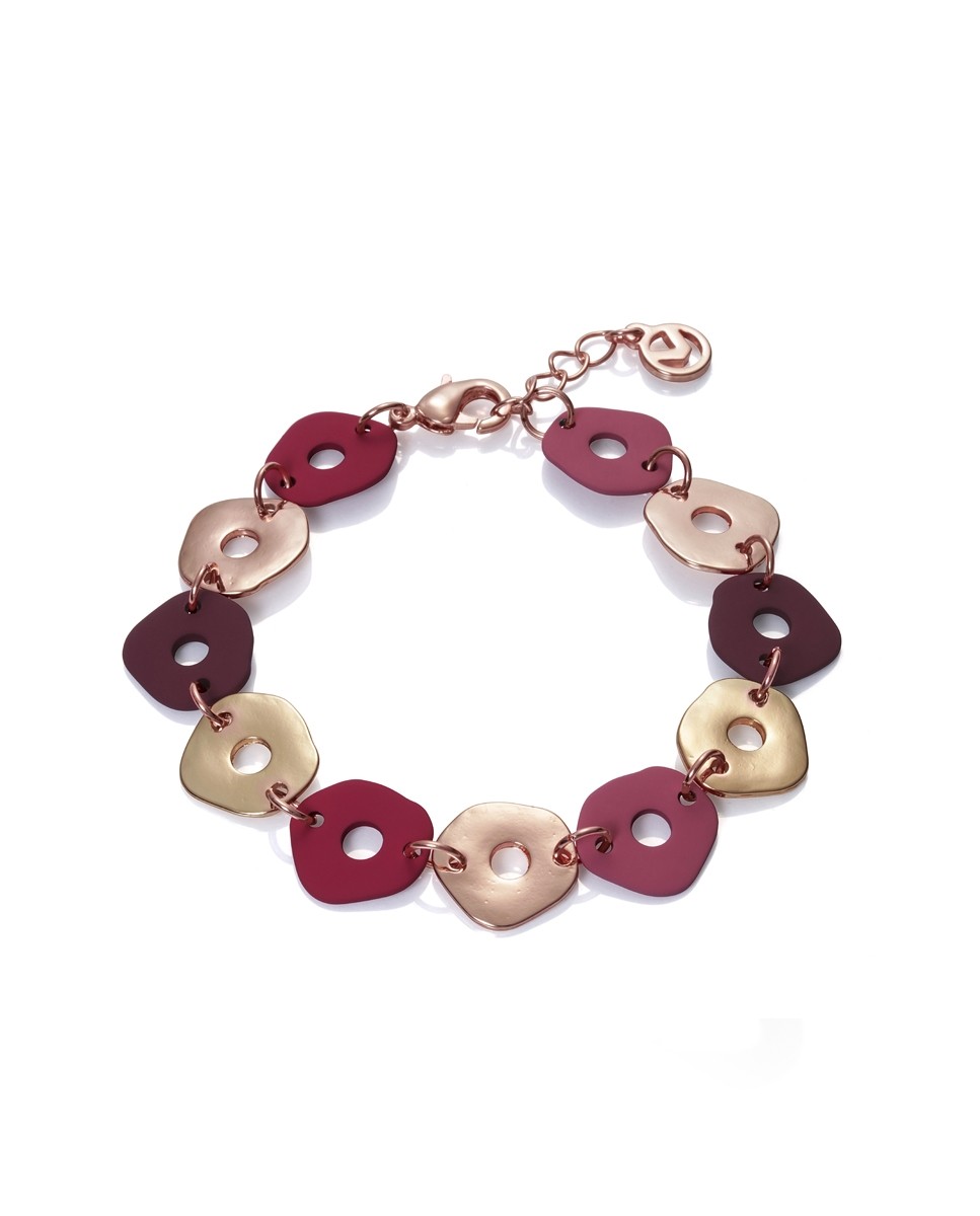 Pulsera Viceroy Air de metal formado por discos irregulares en tonos morados, dorado y rosado. Largo 17,5cm y 2cm de extension.