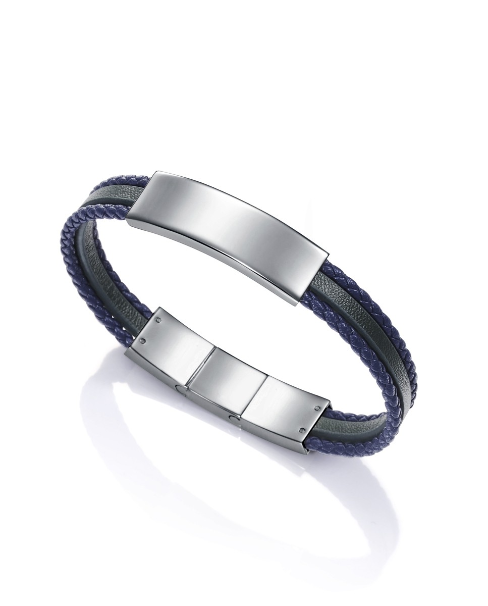 Pulsera de Hombre Viceroy Magnum de piel triple en tonos verdes. Formada por dos cordones de piel tubular y uno central de piel plana trenzados. Placa central de acero. 21,5cm de largo